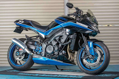 そんなチームカガヤマには“KATANA 1000Rのイメージを市販車にも”という熱烈なリクエストが多く寄せられた。それに応えて、’19年から展開する現行KATANAのカスタムにも着手した。もちろんレーサーではなく、一般ライダーが楽しめるストリート車としてだ。手がけたのは、チームカガヤマが長年のレース参戦で培った技術を用いて最高のサービスを提供することを目的に立ち上げたカスタムショップ、ライドウィンだ。