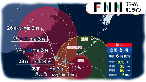 大阪市の賃貸・売買情報【プラス・エヌ】 > 不動産のプラス 心斎橋堀江店のスタッフブログ記事一覧 > 台風6号 先島諸島に接近 動き遅く影響長引く恐れも