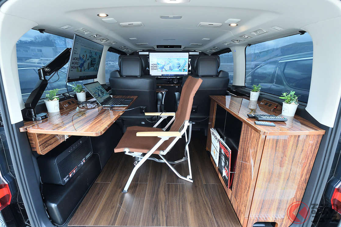 後席空間は移動しながらのオンライン会議が可能! 荷室空間は停車時に構想スペースとして活用される